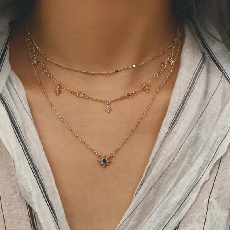 Laramoi женское ожерелье многослойная золотая цепь ключицы звезды геометрические Стразы кулон вечерние ювелирные изделия