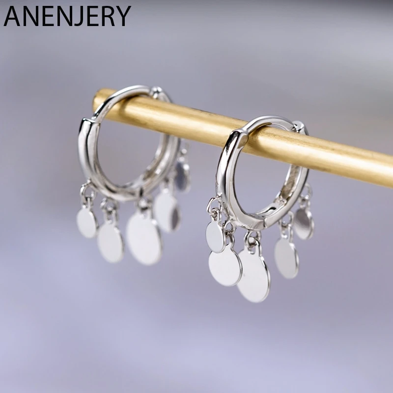 Женские серьги-кисточки Anenjery, серьги из стерлингового серебра 925 пробы с Круглым Диском, S-E893 2019