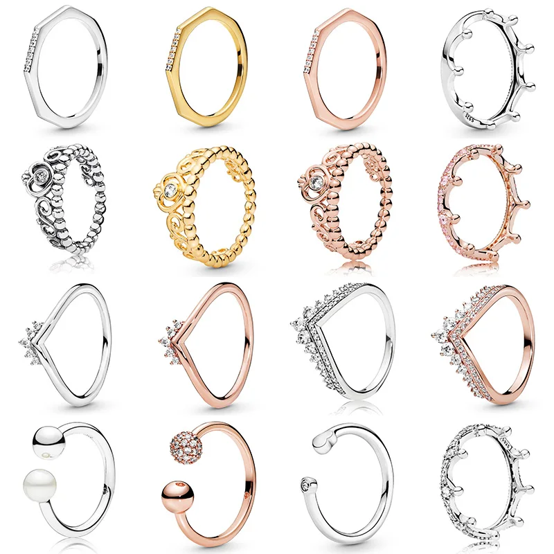 16 видов стилей, новинка, 3 цвета, корона, любовь, сердце, 925 серебро, кристалл, кольца для женщин, Свадебная вечеринка, ювелирное изделие, подар...
