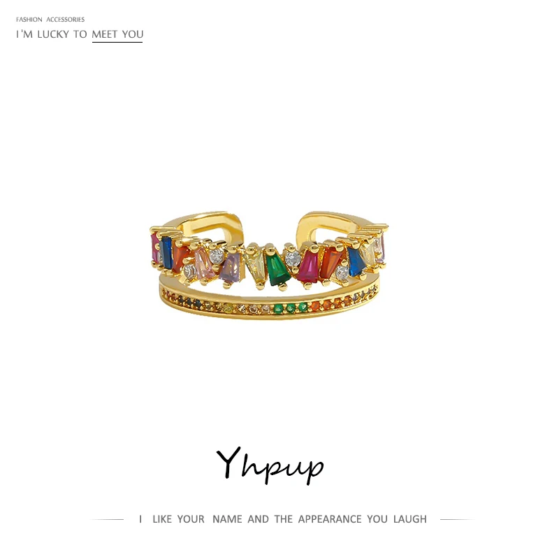 Yhpup 2019 Классическая Корона Радужный Шарм Открытое кольцо красочное циркониевое медное золото женское кольцо для вечеринки Свадебные украш...