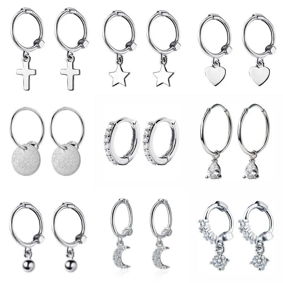 2019 новые маленькие 925 пробы Серебряные подвесные серьги-гвоздики серьги для женщин Звезда Крест Сердце шар срез очарование маленькие серьг...