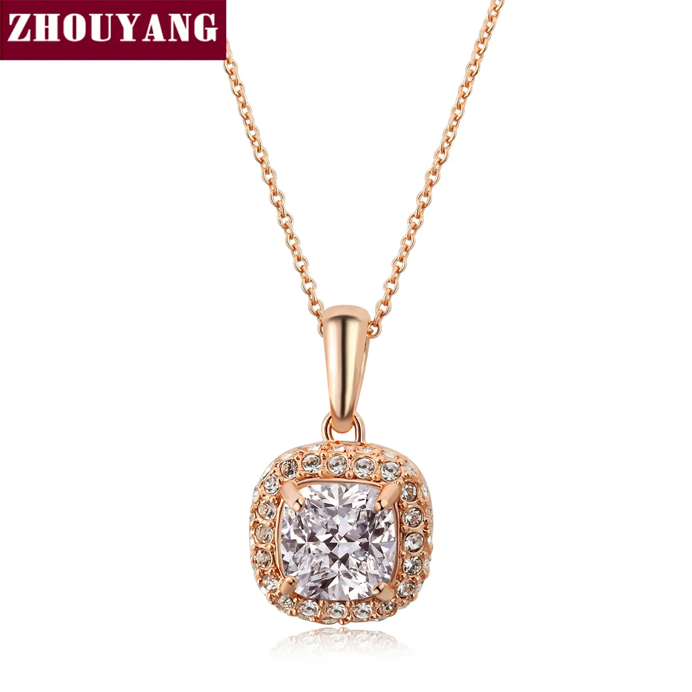 ZHOUYANG Одежда высшего Качества Классические кристалл розового золота Цвет подвеска ожерелья, сделанные с австрийскими стразами оптовая прод...
