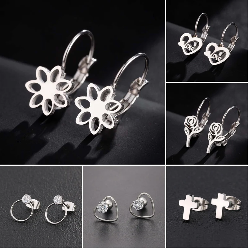 SMJEL, минималистичные Кристальные круглые серьги-гвоздики для женщин, ювелирные изделия из нержавеющей стали, свадебные серьги с цветами, сердечные буквы, серьги-гвоздики