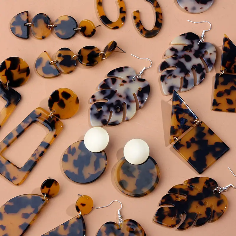2019 Модные леопардовые серьги, ацетатные серьги, индивидуальная преувеличенная серия, Геометрические Квадратные коричневые акриловые серьги