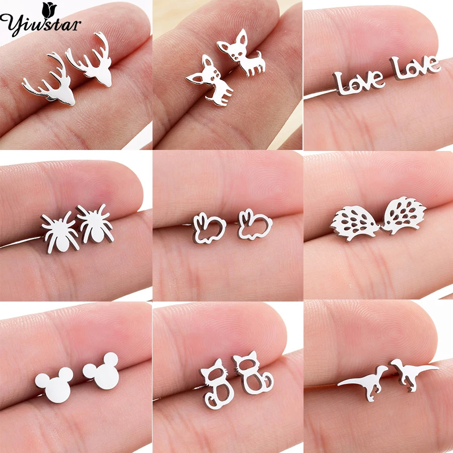 Yiustar нержавеющая сталь мышь серьги гвоздики для женщин обувь девочек крошечные милый кот олень серьги в виде кролика Jewelry Микки животны