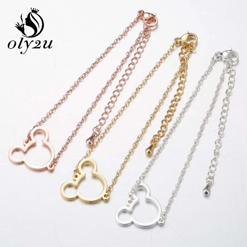 Oly2u Регулируемая цепь браслет Микки для Для женщин Шарм Браслеты Нержавеющая сталь животного подвеска мышь золото мужской браслет