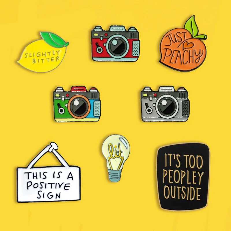 Фруктовый лимонный персик металлическая брошь с эмалью Модная ретро камера лампочка значок булавка Забавный модный внешний рюкзак для одежды ювелирный подарок