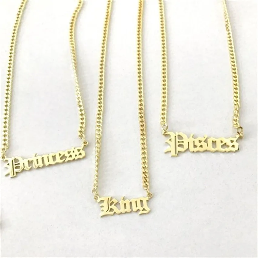 Персонализированное ожерелье C именем браслет из нержавеющей стали пользовательские цепочки Старый английский шрифт подвеска ручной рабо...