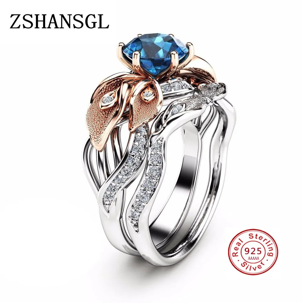 Модные Обручение женские синие Цирконий кольцо для Для женщин Женский Двойные кольца комплект Bijoux дамы любовника Свадебные украшения вече...
