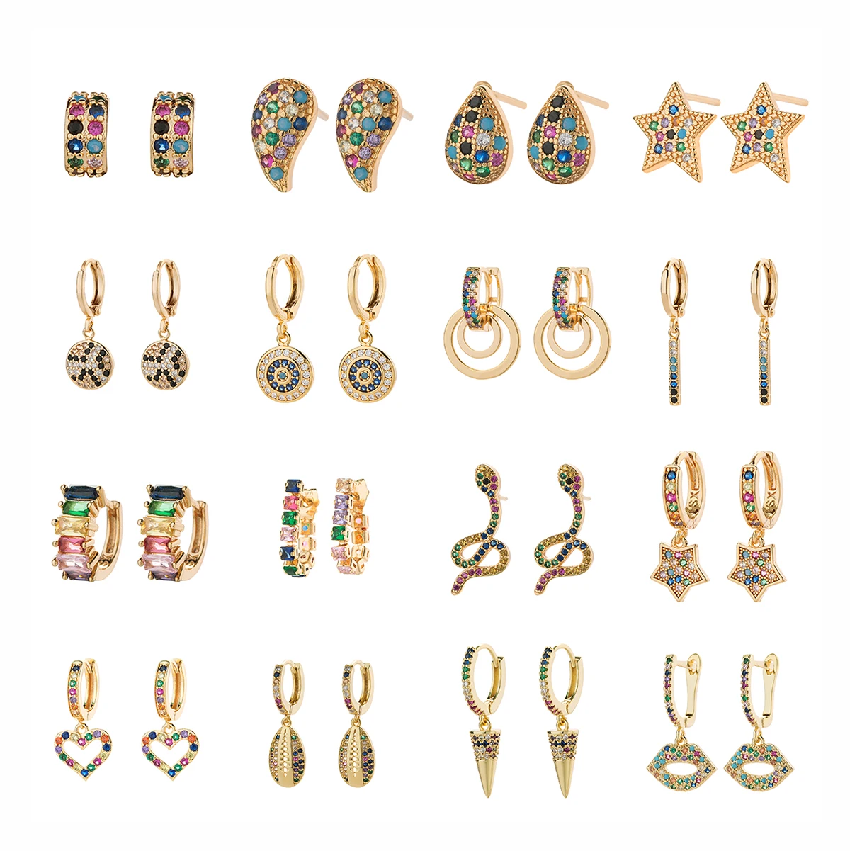 Модные женские микро проложенные серьги-гвоздики из Кубического циркония классические круглые радужные медные серьги Звезда геометрический дизайн кристалл кисточки ювелирные изделия