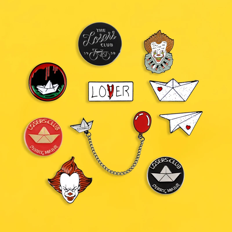 Эмалированные булавки Стивен Кинг это фильм клоун бумажная лодка самолет значки Броши Eddie De клоун нагрудные булавки фильм ужасов ювелирные изделия подарок