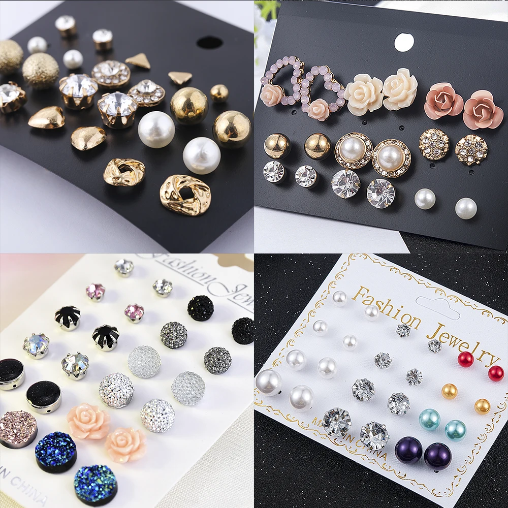 2019 кристалл имитация жемчуга Серьги Набор женские ювелирные аксессуары Пирсинг Серьга-шарик набор бижутерия Brincos оптовая продажа
