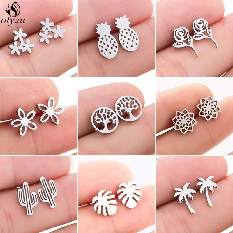 Oly2u из нержавеющей стали Кокосовые серьги в виде дерева для женщин девочек модные ювелирные изделия милый кактус лист цветок серьги подарок...
