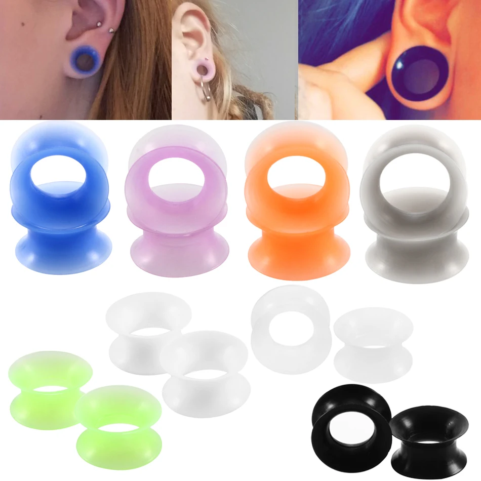 2 шт./лот Силиконовые Пирсинг Уха Гибкий тонкий туннель с двумя расширяющимися концами плоть беруши и Туннели уха Сережка-расширитель носил...