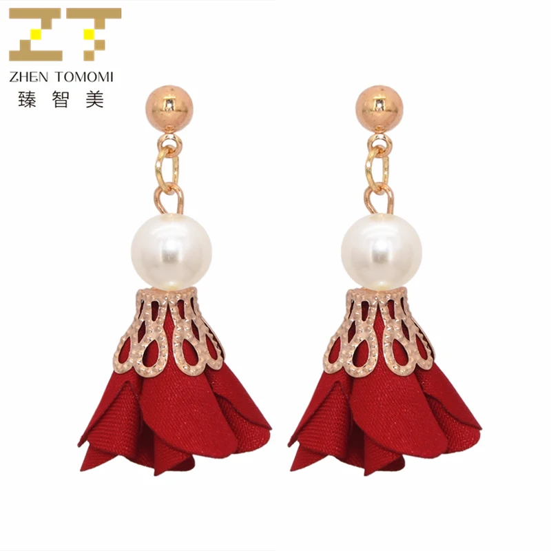 2018 Новые поступления женские модные металлические серьги с шариками имитация жемчуга ткань художественные цветы Висячие серьги для женщин...
