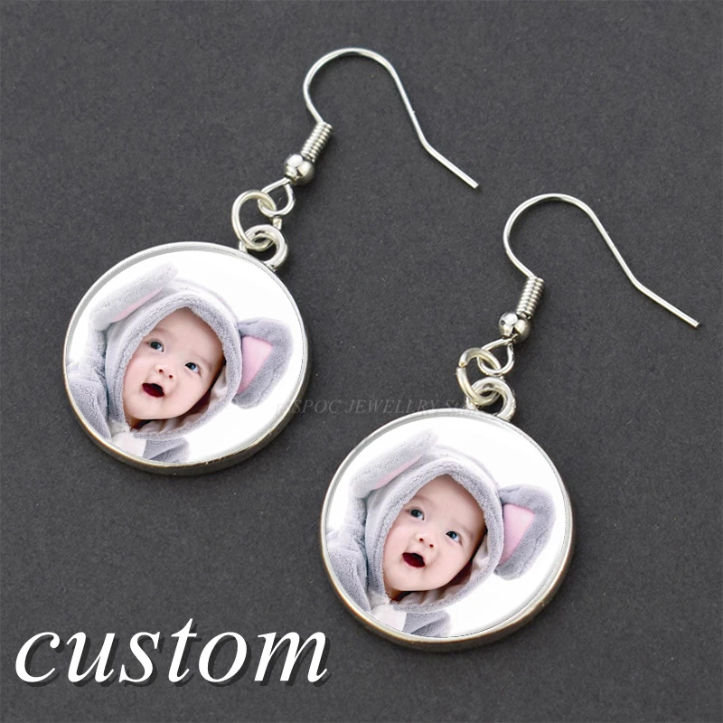 Модные персонализированные DIY висячие серьги с логотипом на заказ фото слово Txt серьги-гвоздики Бижутерия со стеклянными кабошонами ушной крючок для женщин подарок