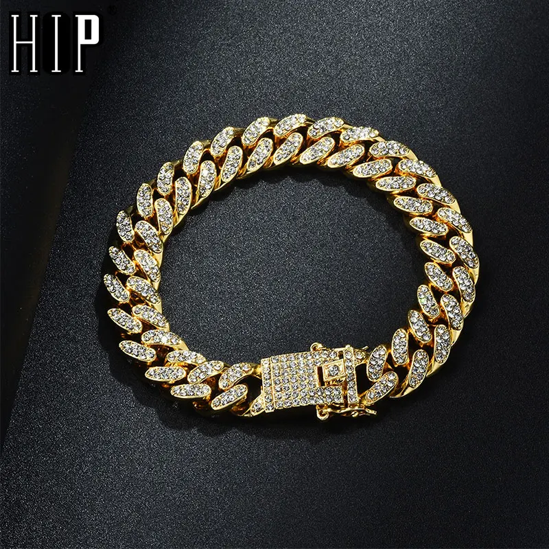 Хип хоп Bling Iced Out Полный AAA Кристалл паве для мужчин's браслет золотой серебряный цвет Майами КУБИНСКИЙ звено цепи браслеты для мужчин ювелирн...