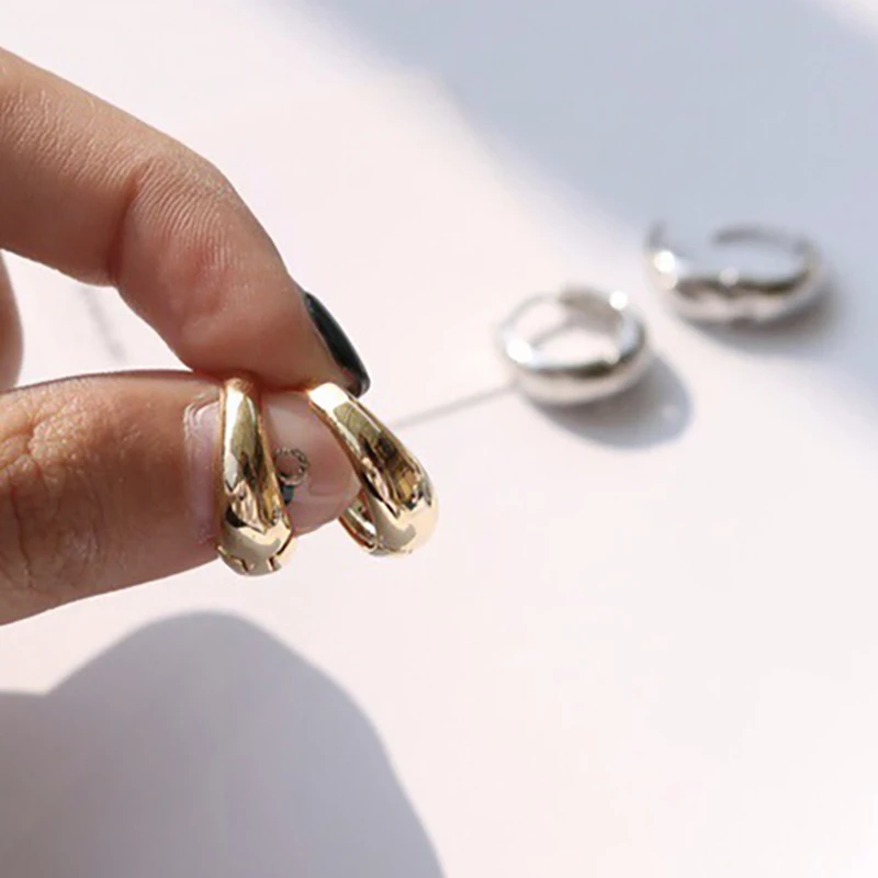 SRCOI модные золотые серебряные цвет толстые обручи Серьги Круглый Круг геометрический Huggie минималистский мини маленькая петля оптовая прод...