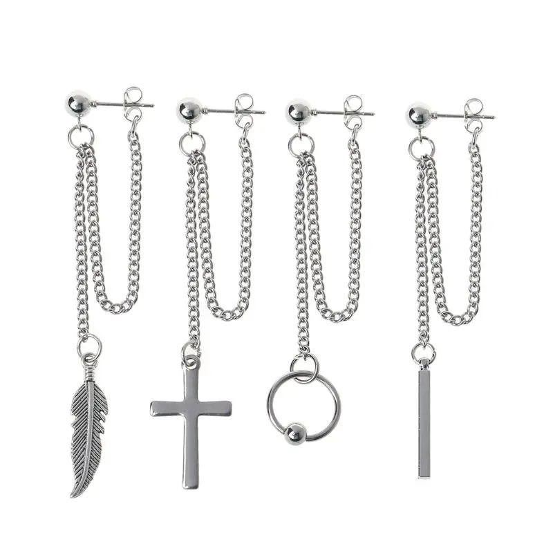 Титановая сталь корейский Bangtang Мальчики крест лист кулон двойная цепь Серьги