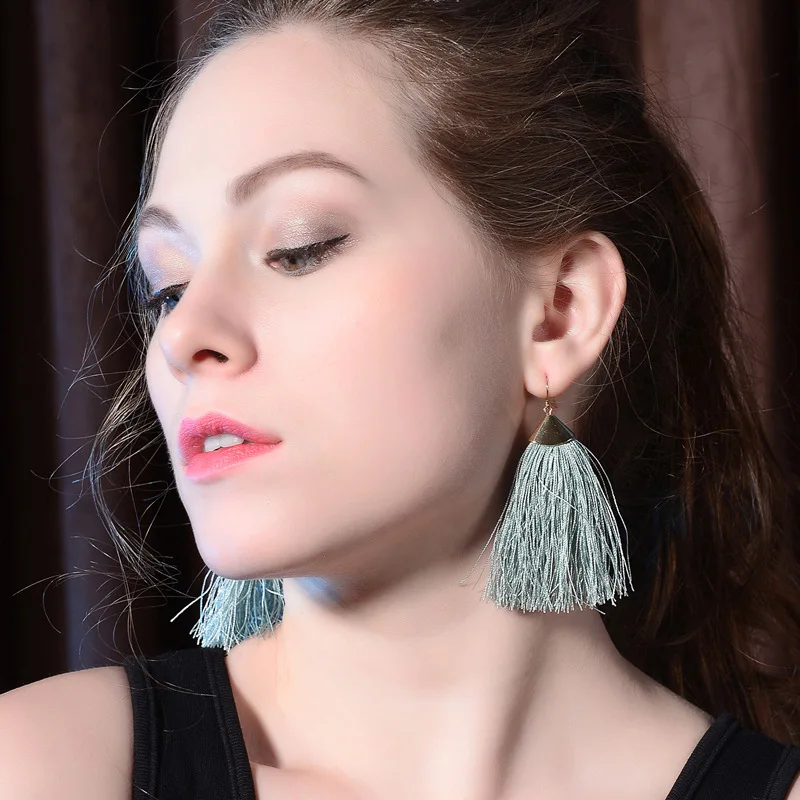 LZHLQ кисточкой серьги для женщин Этническая крупные серьги с подвесками Богемия модные украшения Мода Хлопок Веревка бахрома длинные висячи...