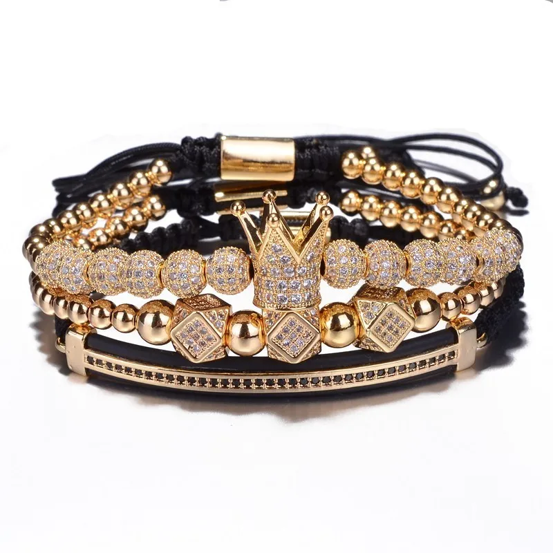 Роскошные ювелирные изделия CZ многоугольник шар Корона Шарм Медь из бисера макраме ручной работы для мужчин 3 шт. браслеты Набор браслеты дл...