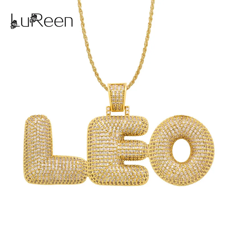 Лорин пользовательское имя пузырь кулон из букв Цепочки и ожерелья s для мужской хип-хоп циркониевое ожерелье кубической формы Золото Сереб...