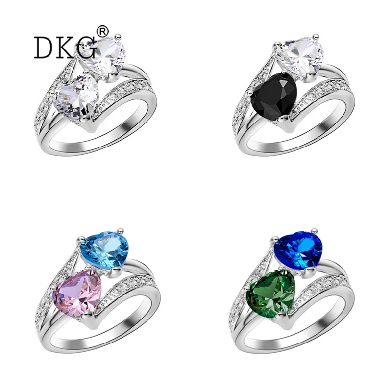 Модные Простые инкрустированные циркон Двойное сердце Кристалл кольцо День рождения Обручение свадебный подарок подходит для Для женщин ю...