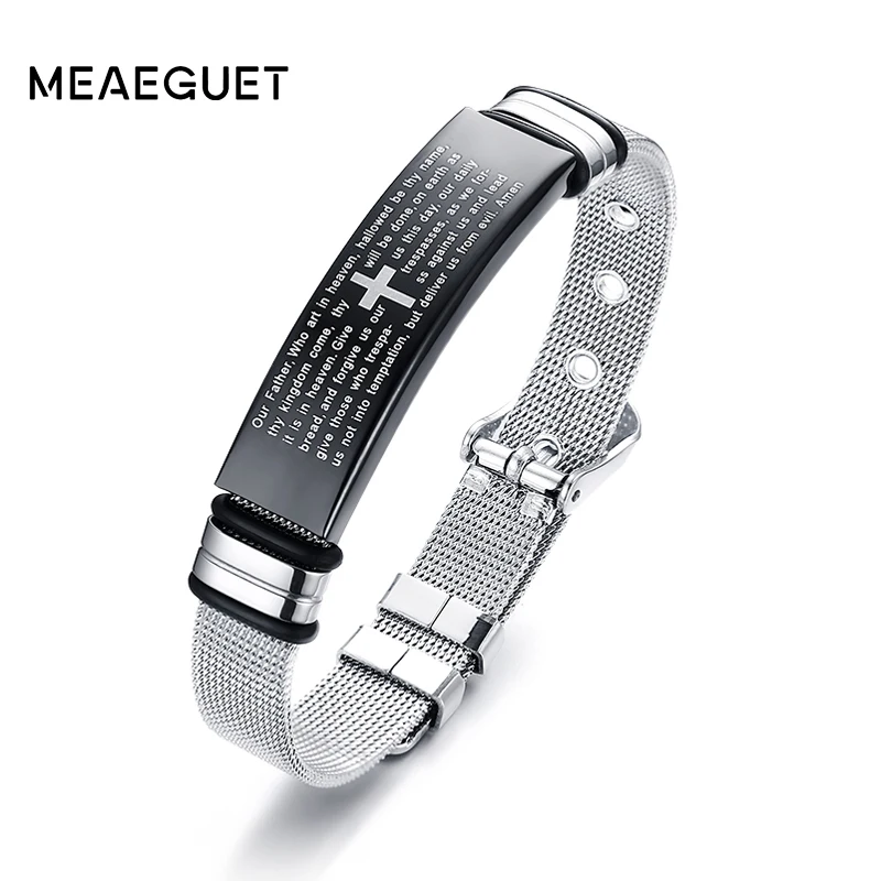 Христианский Господь молитва Хранитель сетки Браслеты для слайд Нержавеющая сталь Регулируемый Иисус серебристый Крестик Браслет Мужской...