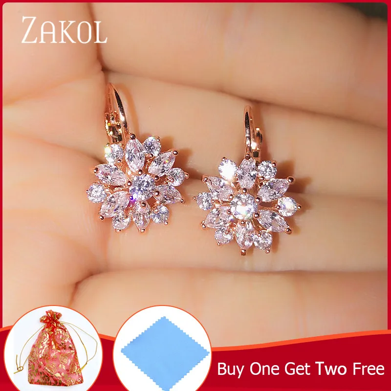 ZAKOL Мода розовое золото Цвет цветок обруч серьги кластера прозрачного хрусталя циркония серьги для Для женщин ювелирные Brincos FSEP609