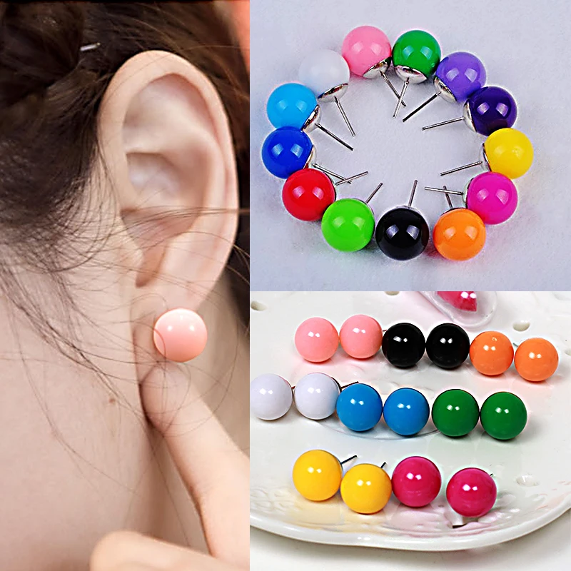 1 пара 12 Choics конфеты цвет милый сладкий корейский стиль мяч форма пластиковые Запонки Серьги
