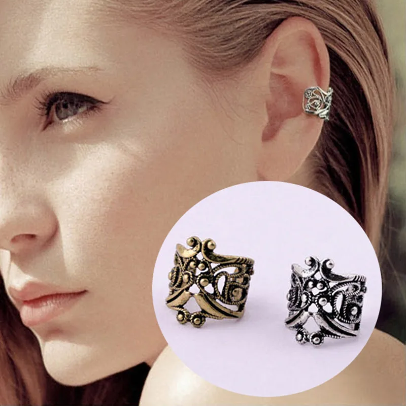 ES132 Винтаж античный ухо манжеты панк маленький цветок полые Шарм клипсы оптовая продажа дешевые украшения для женщин мужчин