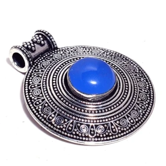 Подлинная синяя подвеска халцедон серебряное покрытие над медью, ручная работа женские ювелирные изделия подарок