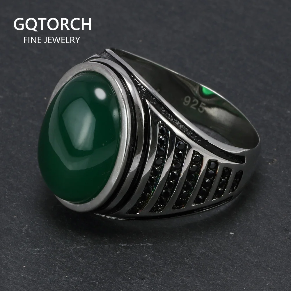 Гарантированное 925 Серебряные кольца крутые винтажные кольца натуральный камень черный оникс мужские индейки кольца с камнем Турция ювели...