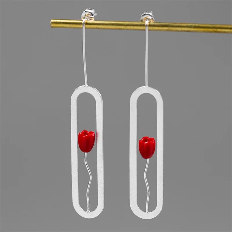 INATURE новые модные ювелирные изделия 925 пробы серебро красный коралл цветок серьги гвоздики для вечерние подарок на свадьбу