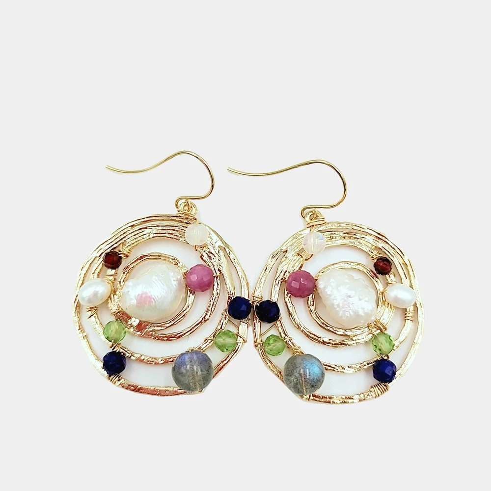 Lii Ji пресноводный жемчуг Настоящий камень геометрический Круг Золотой Цвет висячие серьги 925 пробы серебряный крючок серьги для женщин ювел...