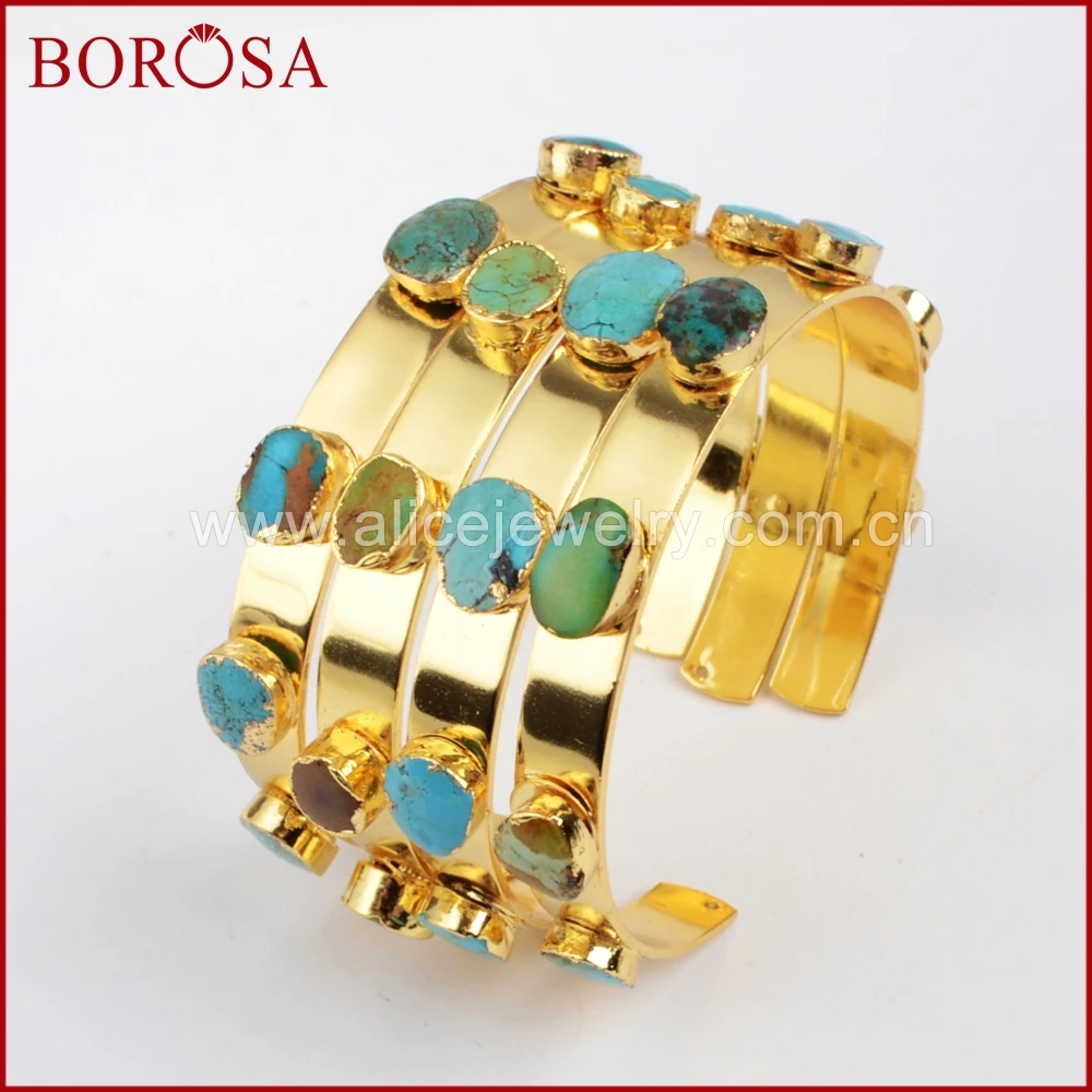 BOROSA модные золотые Цвет семь 100% натуральный синий камень браслет для Для женщин, новый Druzy синий камень драгоценные камни Drusy Для женщин браслет G1341
