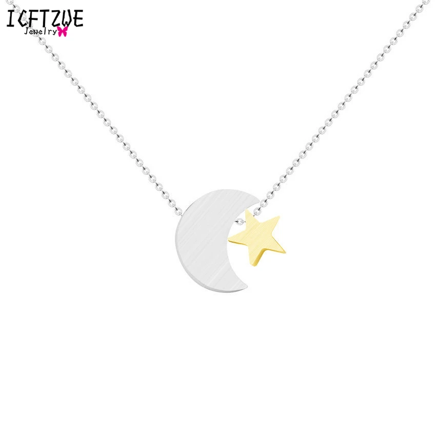 ICFTZWE серебряная звезда заявление ожерелье золотой цвет луна ожерелье s женские украшения из нержавеющей стали колье Ketting Bijoux Femme