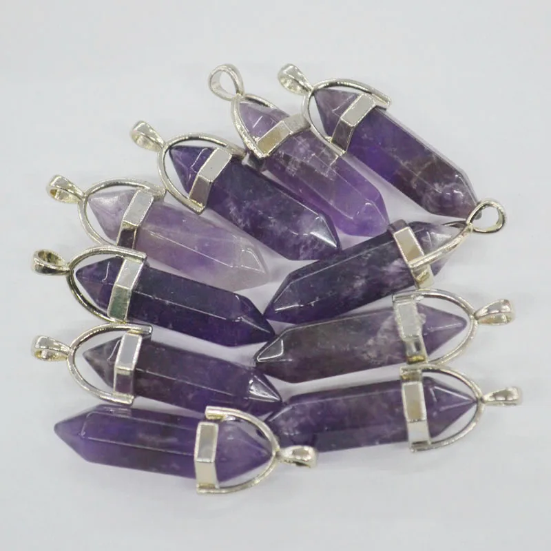 24 шт. Природный пурпурный кристалл столб подвески и ожерелья для изготовления ювелирных изделий модные смешанные Шарм точечная Подвеска Бе...