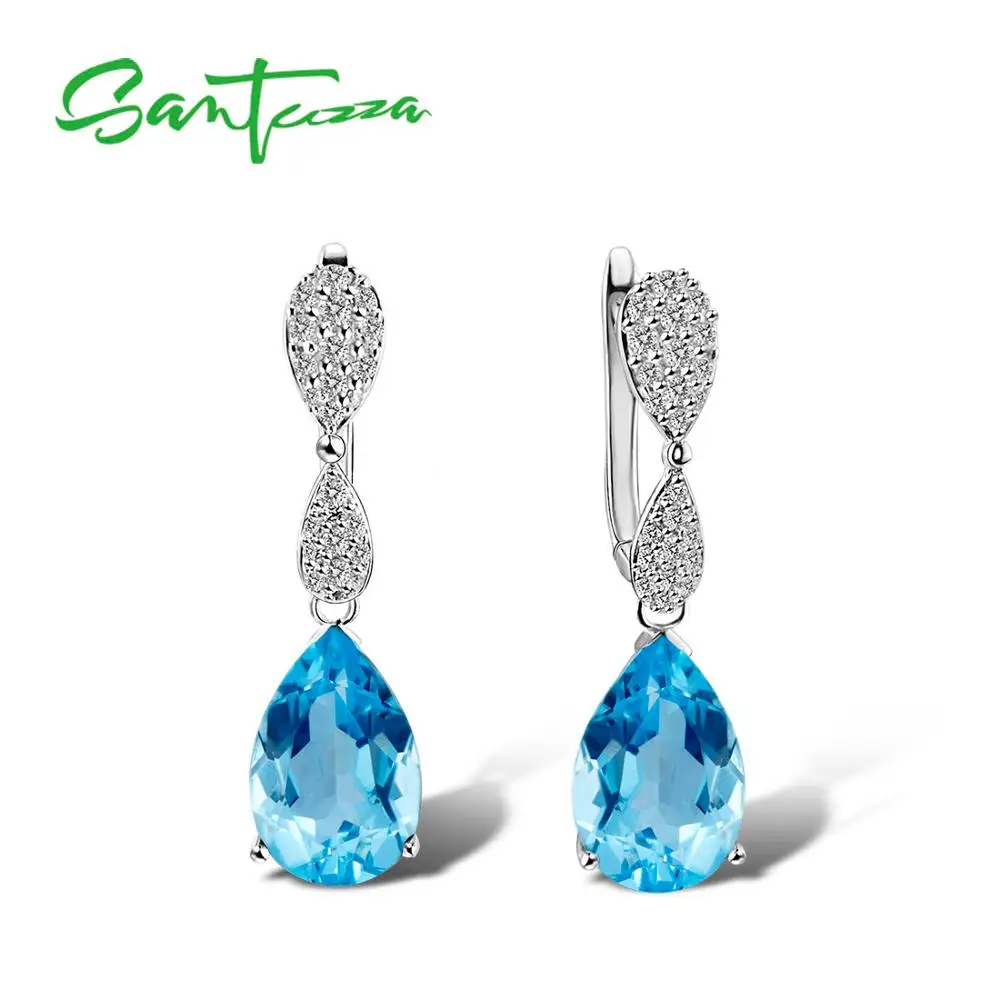 SANTUZZA Серебряные серьги для Для женщин Magic Голубой Кристалл падение серьги чистого 925 пробы серебро свадебные Модные украшения