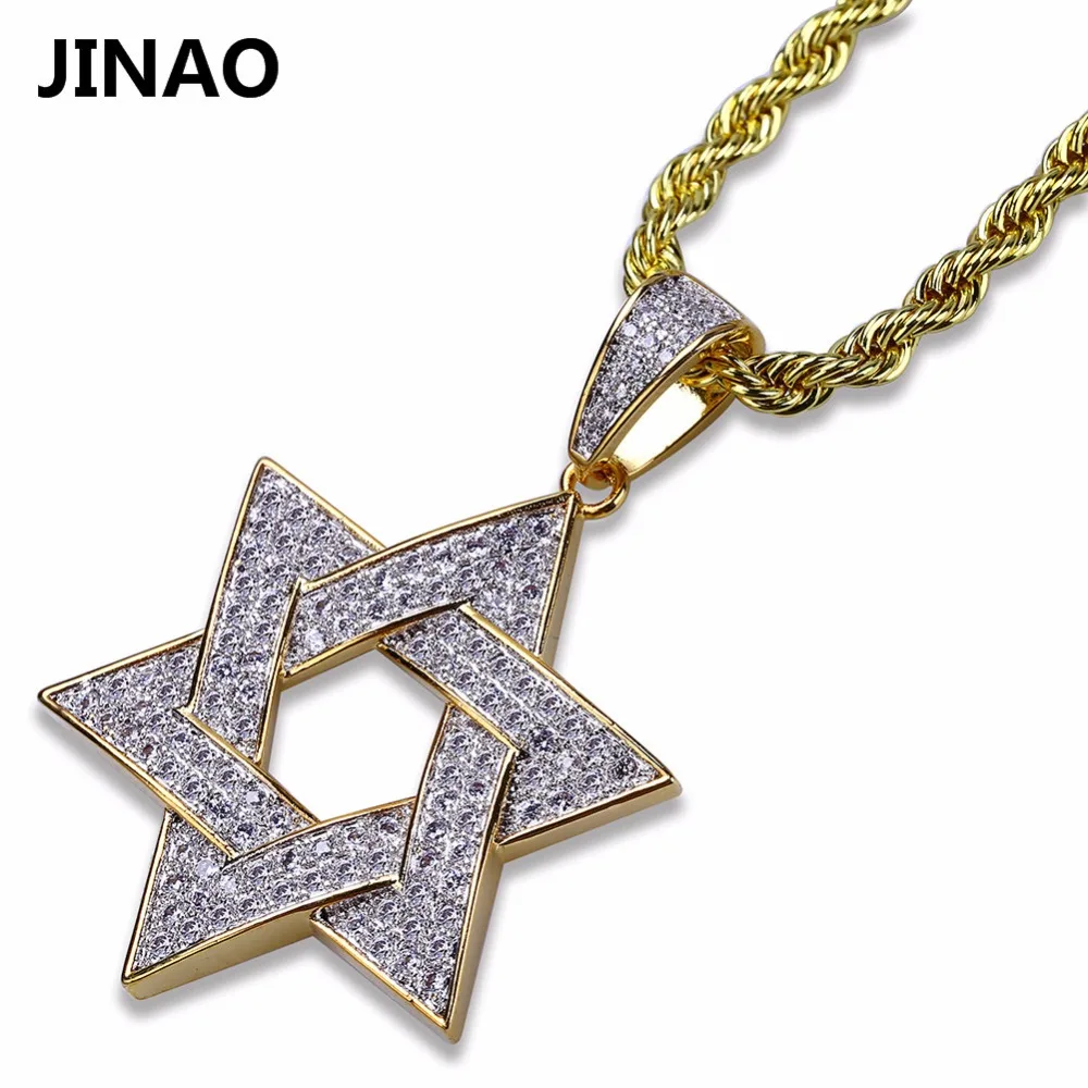 JINAO позолоченное ювелирное ожерелье, микро проложенный CZ камень, Звезда Давида, кулон, ожерелье в стиле хип-хоп рок для мужчин
