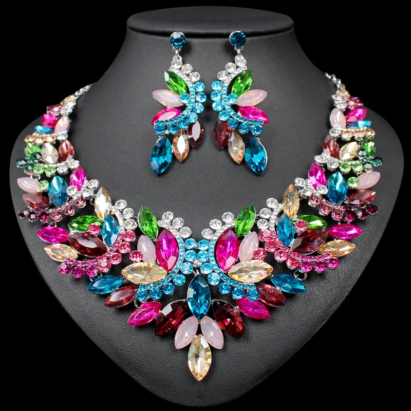 Мода Кристалл ожерелье серьги набор индийские Свадебные украшения наборы для невесты Свадебный костюм ювелирные изделия аксессуары для женщин