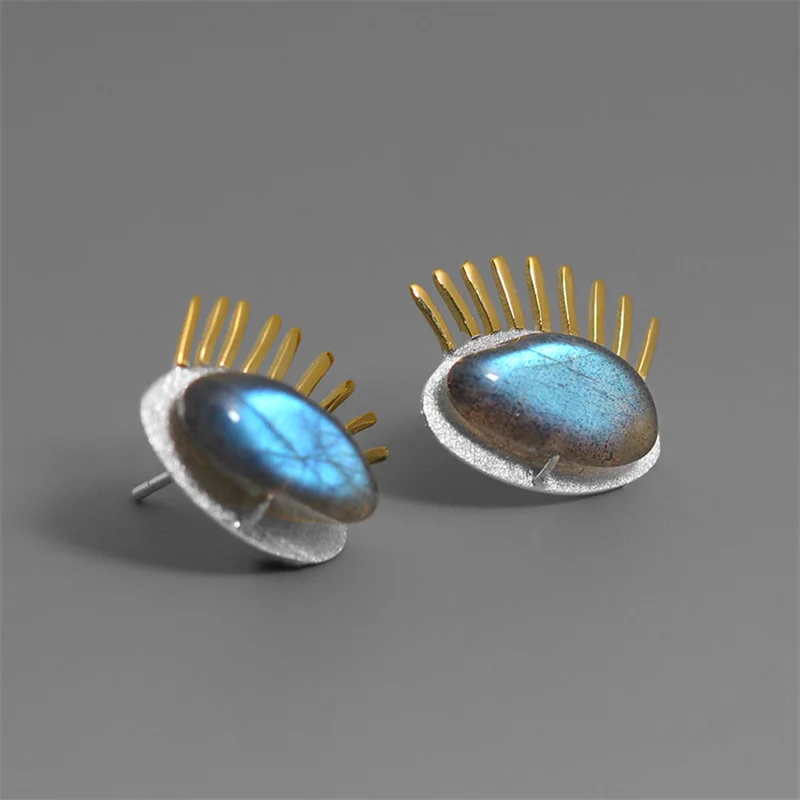 INATURE, 925 пробы, серебряные, синие, лабрадорит, серьги-гвоздики с большими глазами для женщин, ювелирные изделия, аксессуары