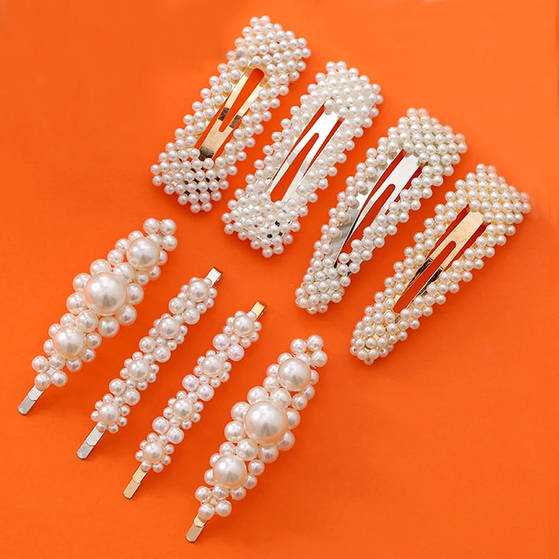 Большая геометрическая заколка ручной работы BB, элегантная заколка для волос, КАПЛЕВИДНАЯ Цветочная заколка с жемчужиной для женщин, аксессуары для волос для девочек, стиль