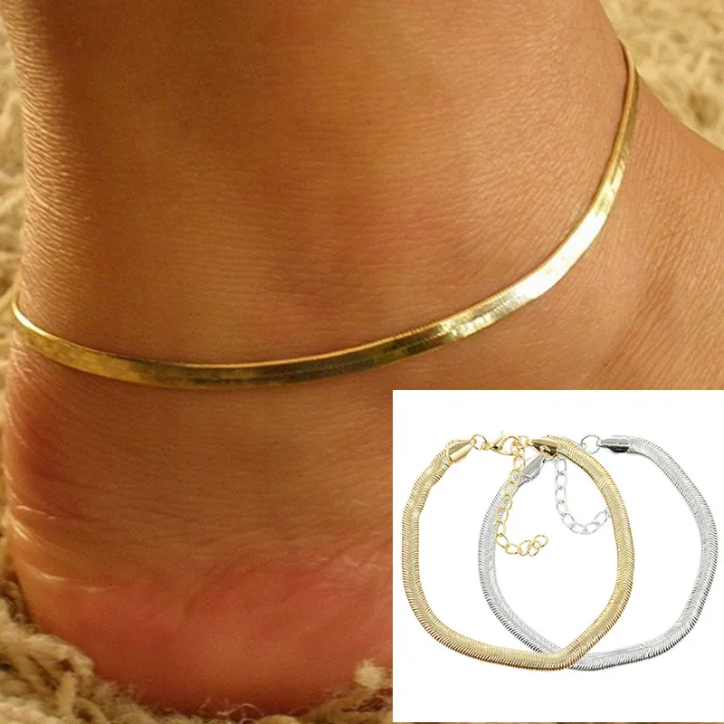 Новый Для женщин браслет на ногу ювелирные изделия простой цвета: золотистый, Серебристый цепи Шарм пляжные богемный браслет на лодыжку под...