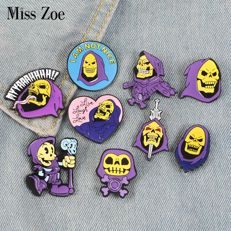9 стилей скелетор фиолетовый капюшон Эмаль Булавка мастера Вселенная значок брошь сумка Одежда лацкан булавка классический мультфильм юве...
