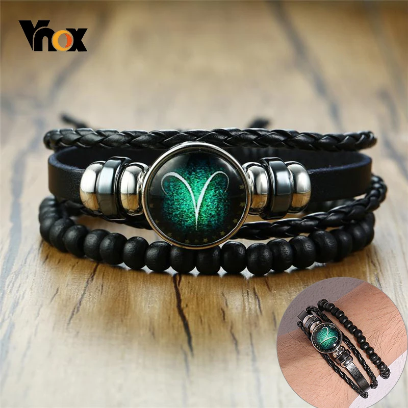 Vnox Aries 12-слойные кожаные браслеты с веревкой для мужчин и женщин, подарки, Винтажные Ювелирные изделия pulseira