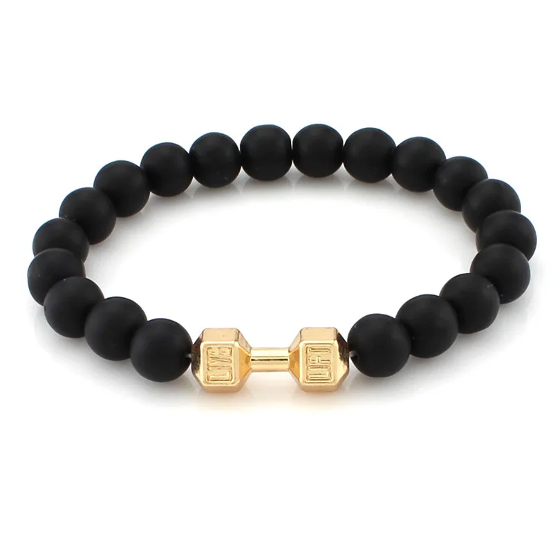 Фитнес гантели Для мужчин энергии браслеты из штанг цвет серебристый, золотой украшение с Гирей Для женщин матовый камень Браслеты