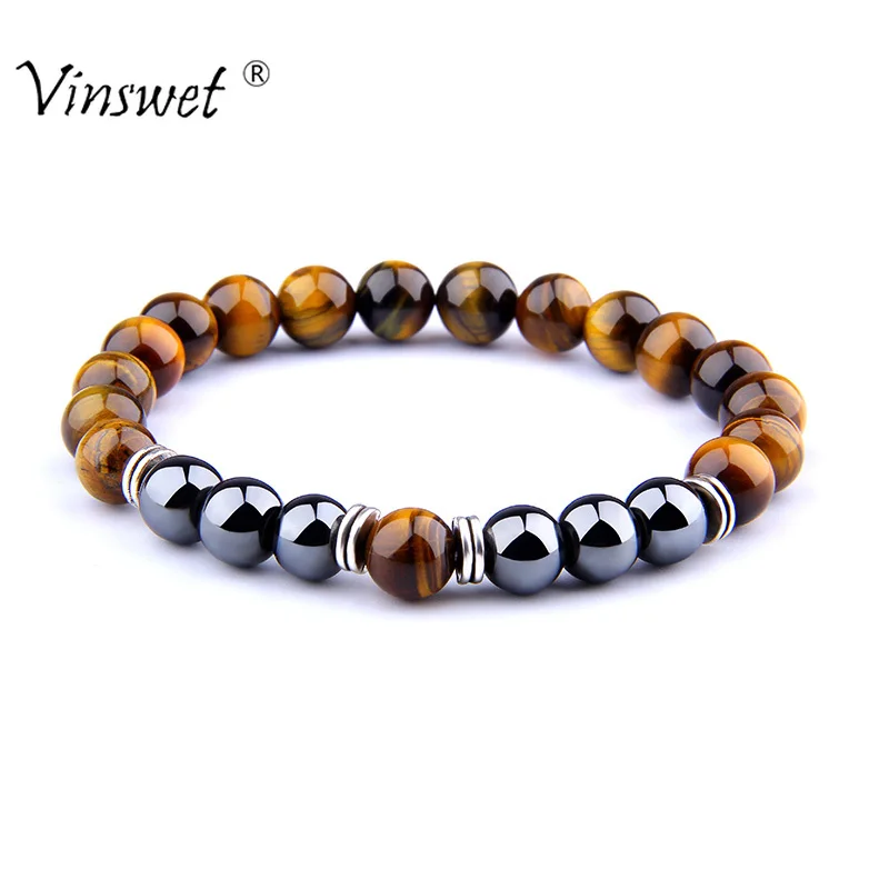 Натуральный бусины с тигровым глазом Браслеты для Для женщин здравоохранения гематита эластичные браслеты для Для мужчин Модные украшения...