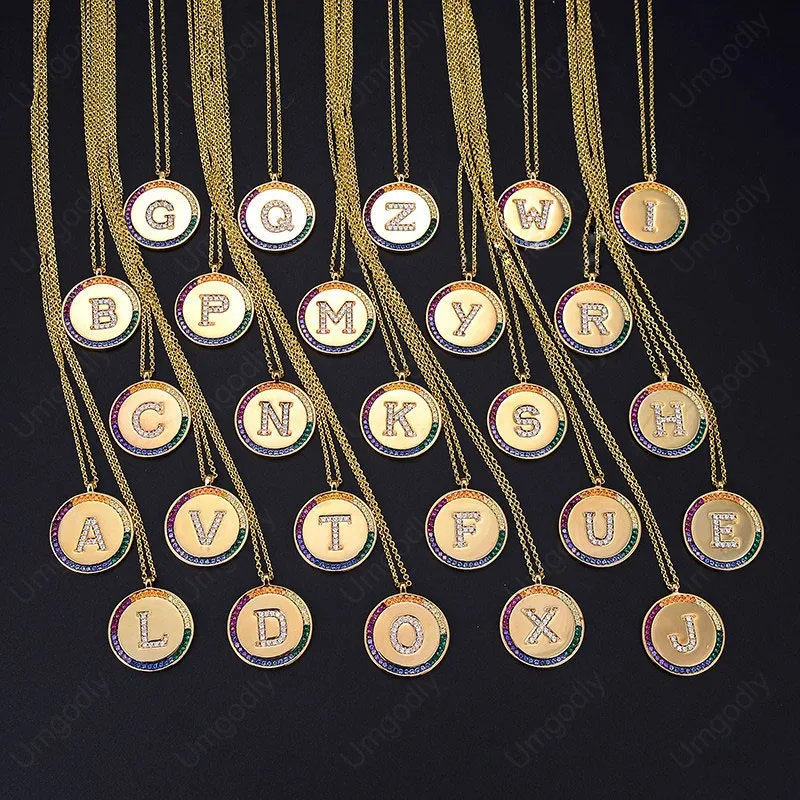 UMGODLY Роскошное однотонное медное Радужное ожерелье с надписью A B C Z 26 алфавитное начальное имя круглое регулируемое женское модное ювелирное изделие