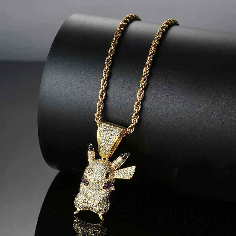 Прекрасный мультфильм аниме роль Пикачу Bling Iced Out хип хоп кулон для мужчин женщин цепочки и ожерелья Jewelry Бесплатная теннис цепи